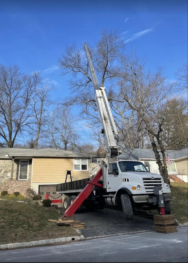 Our trained crew uses cranes, bucket trucks, and proper climbing techniques to complete the job with precision and care, protecting your home and landscape.